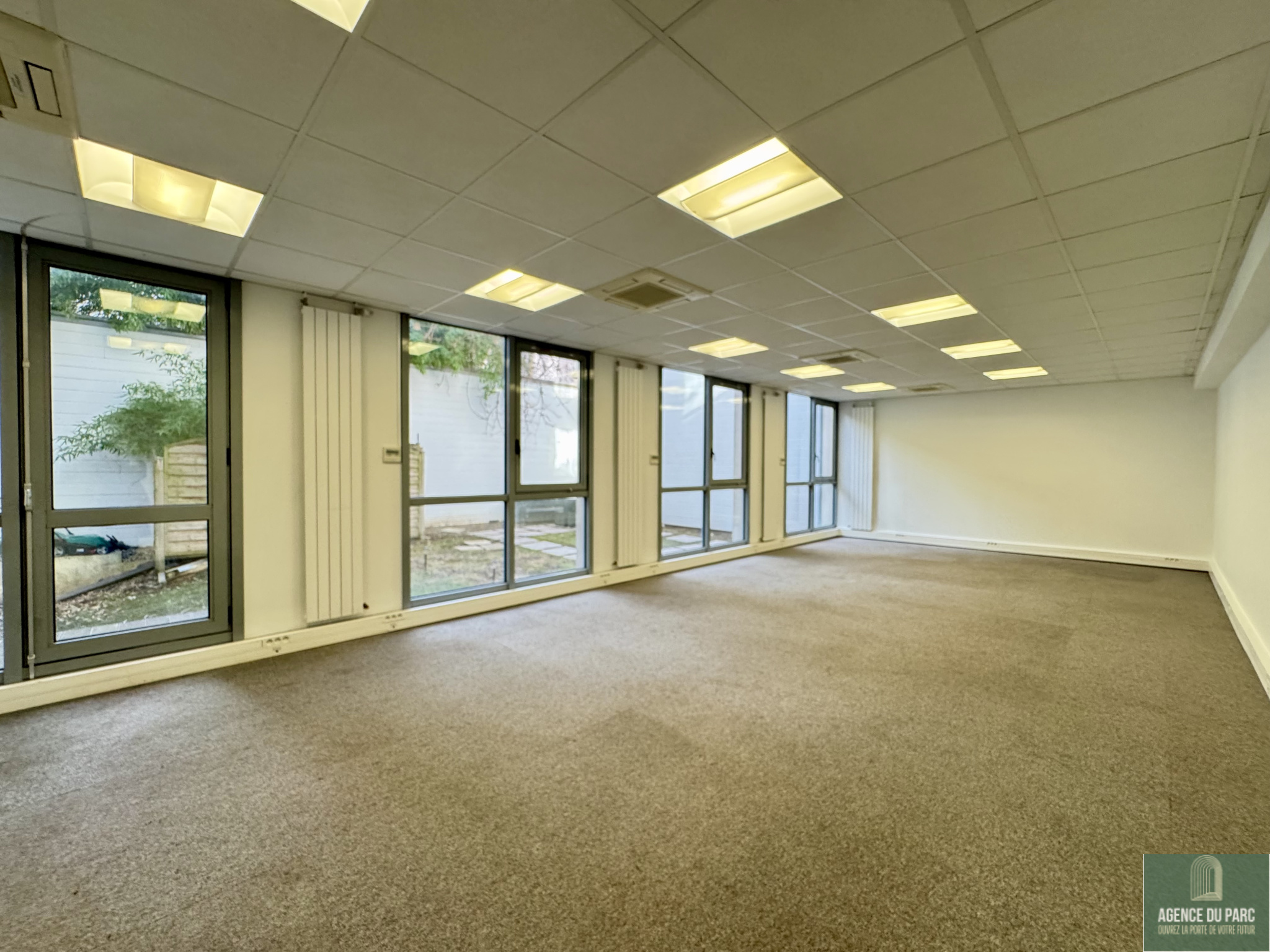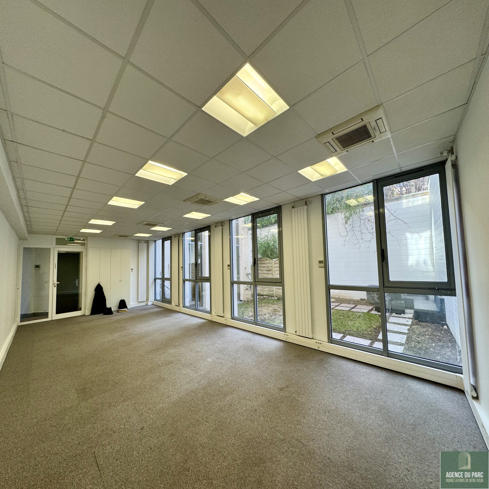 A proximité du métro Louise Michel, dans un bel immeuble sécurisé, récemment ravalé, au rez de chaussée, des locaux de bureaux comprenant un dégagement vitré sur patio arboré, un grand plateau de 55 m2 environ, ouvert par des baies vitrées sur un jardin privatif, deux bureaux indépendants de 9 et 11 m2, deux WC, un espace kitchenette avec évier, micro onde et réfrigérateur;