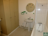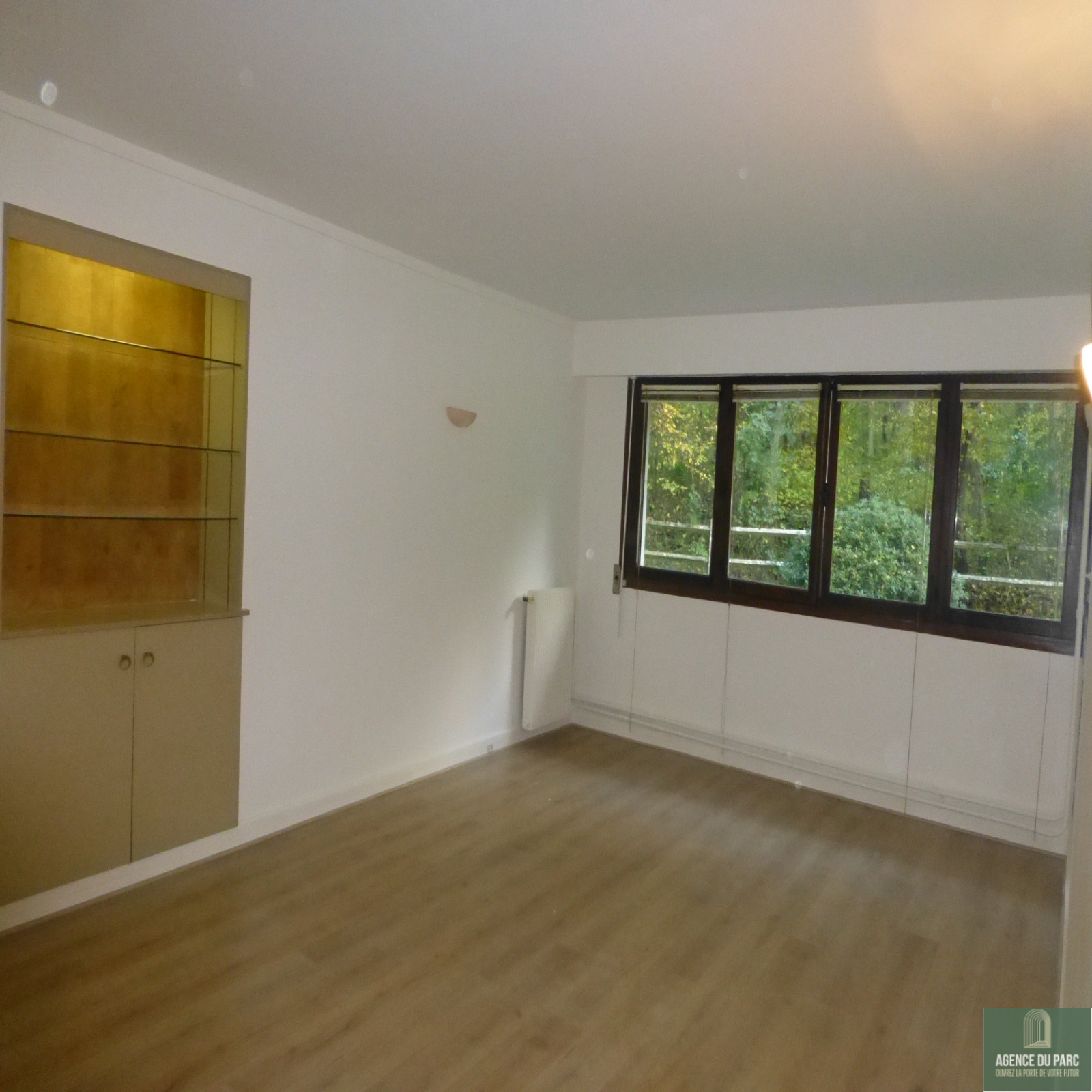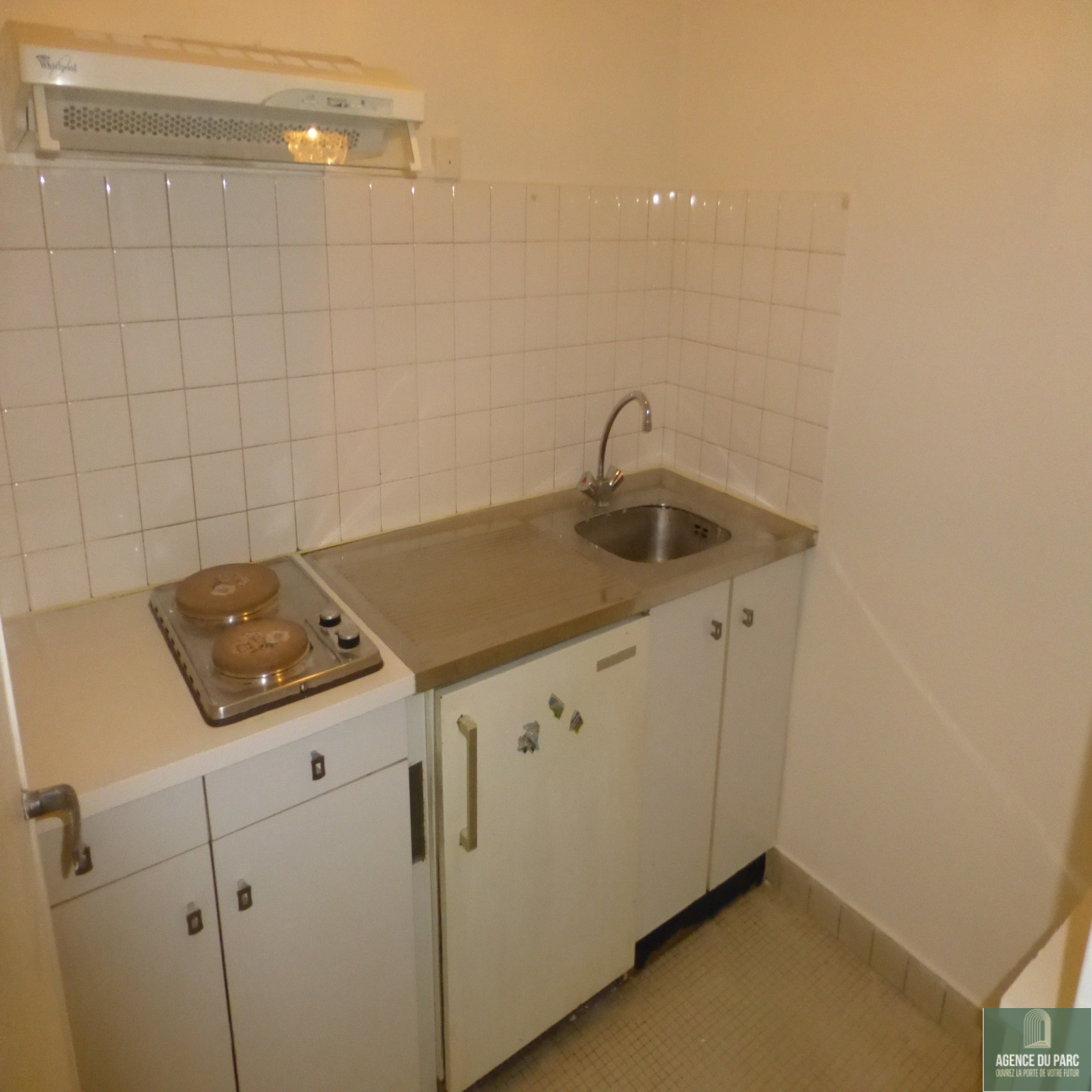 A 2 kms du centre ville, face à la forêt, studio 31 m² en rez-de-chaussée comprenant: pièce principale 20 m² sur jardin face à la forêt et très calme, petite cuisine indépendante équipée (bloc évier, 2 plaques électriques, hotte, réfrigérateur, placards hauts et bas), salle de bains (baignoire, lavabo, WC, ballon d'eau chaude électrique). Chauffage collectif.