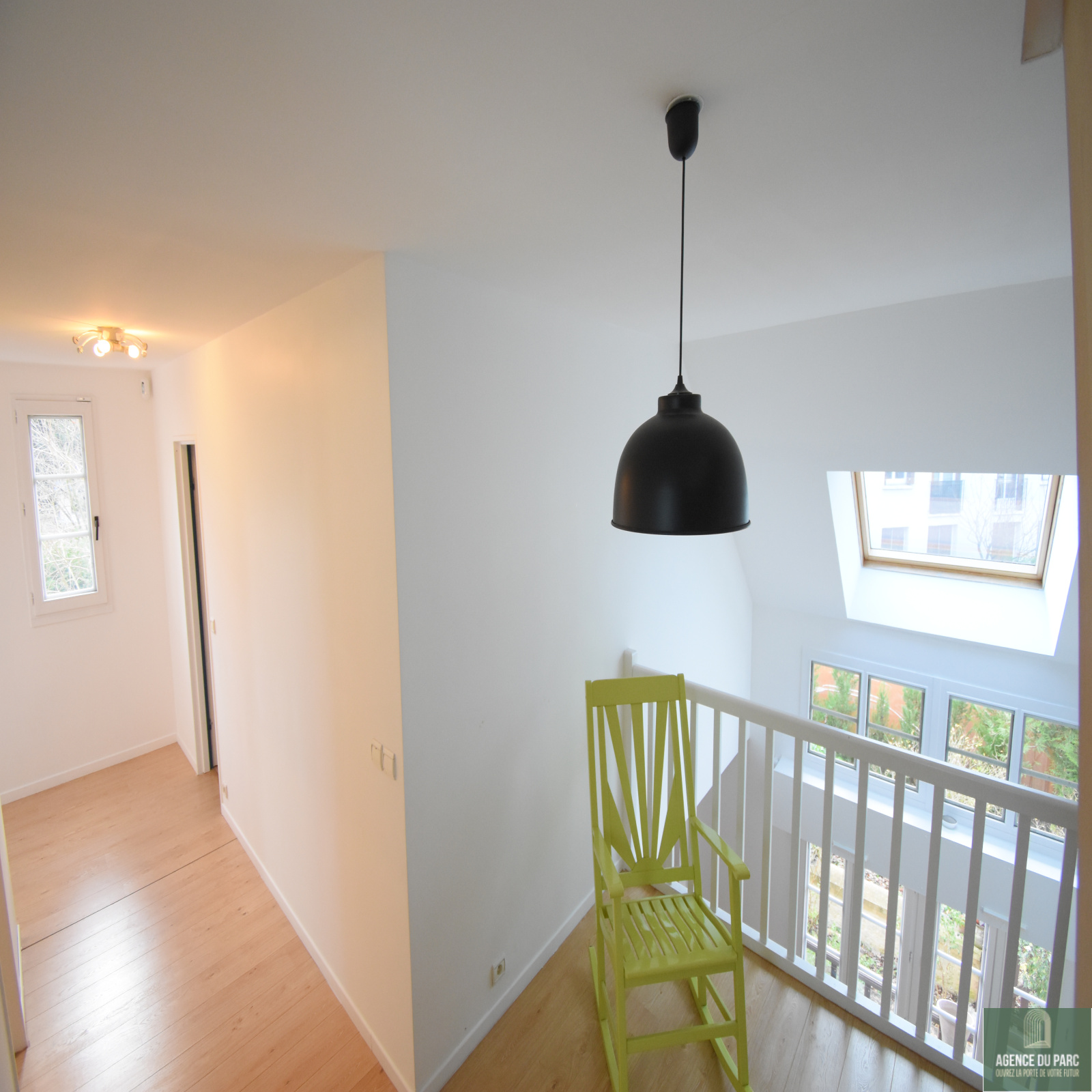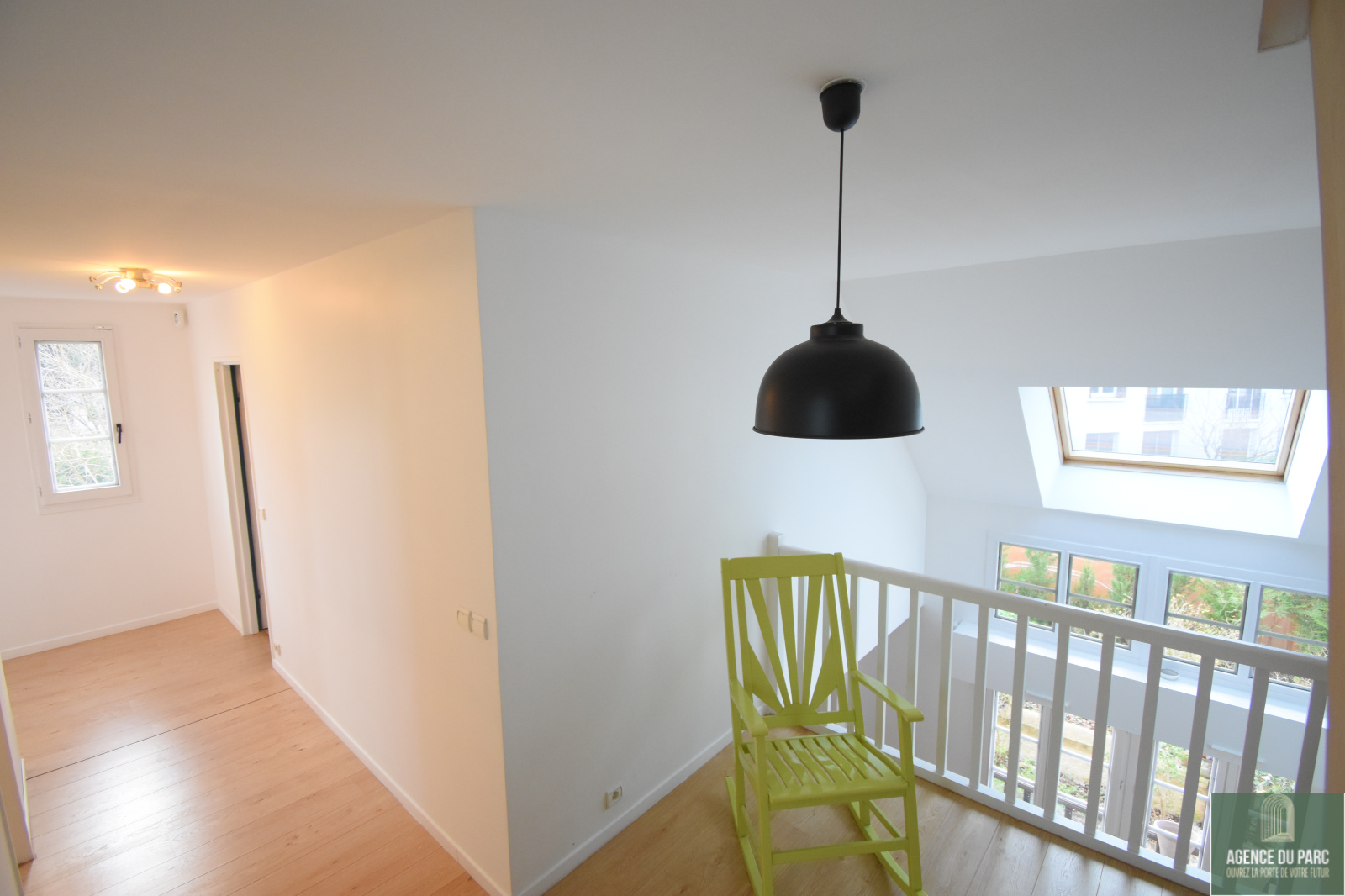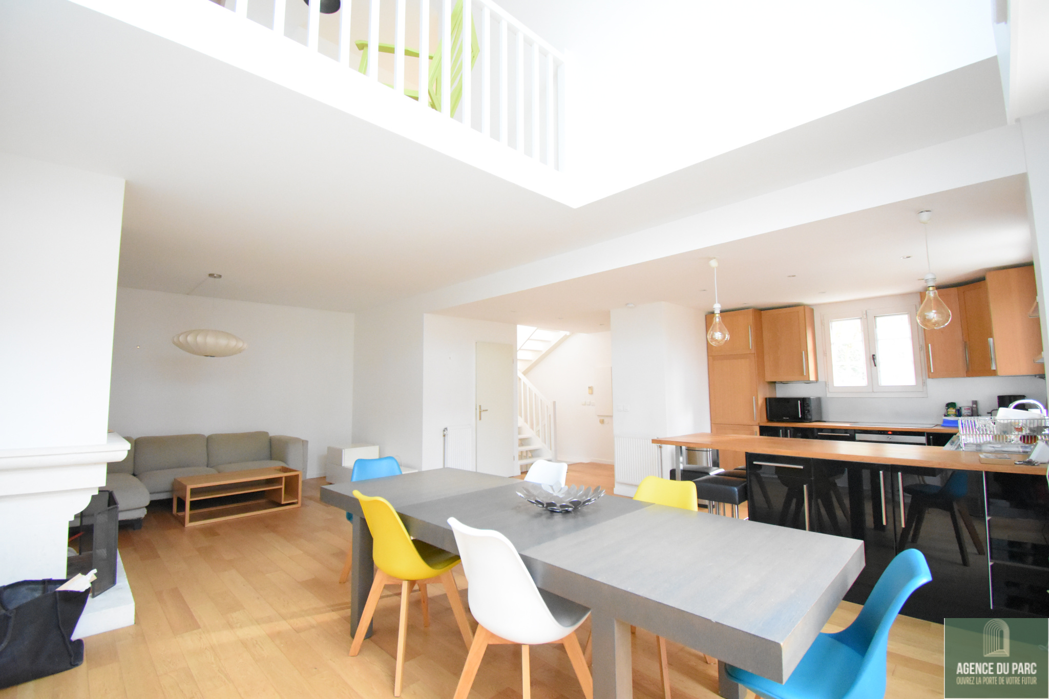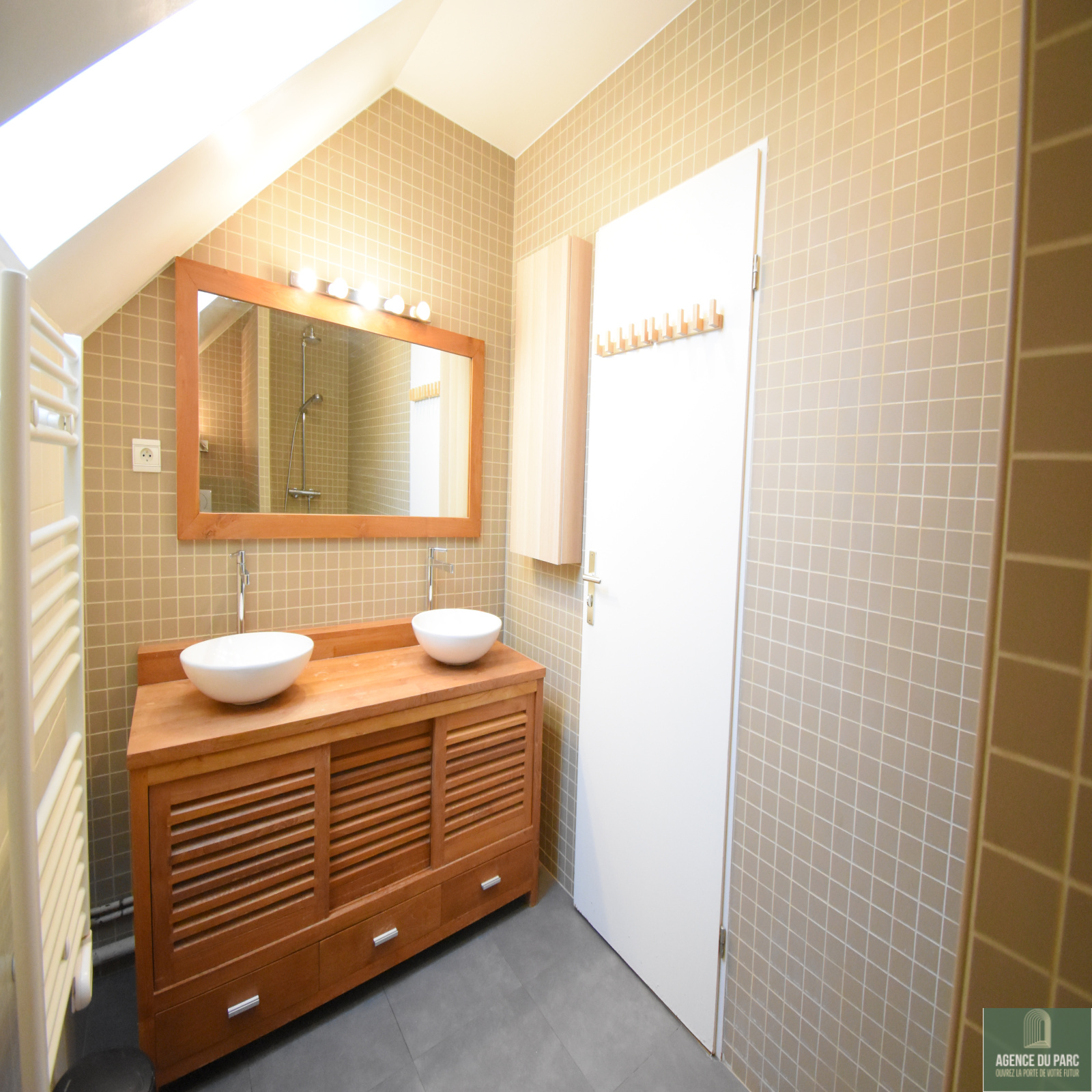Dans une copropriété en lisière de forêt, au calme, l'Agence du Parc vous propose une maison indépendante et lumineuse avec un jardin privatif. La maison est louée meublée. Au rez-de-chaussée, une belle pièce de vie avec une cheminée, un coin salon, un coin salle à manger, un cellier et une cuisine toute équipée ouverte sur la salle à manger. Au premier étage, une chambre avec rangements, une salle de douche avec double vasque et WC, une mezzanine donnant sur la verrière du salon, un espace aménagé sous combles. En soupleix deux chambres, une salle de bains, un WC séparé et une buanderie .