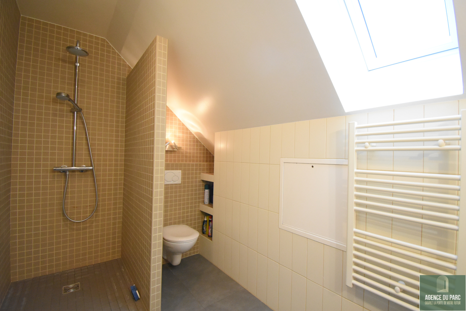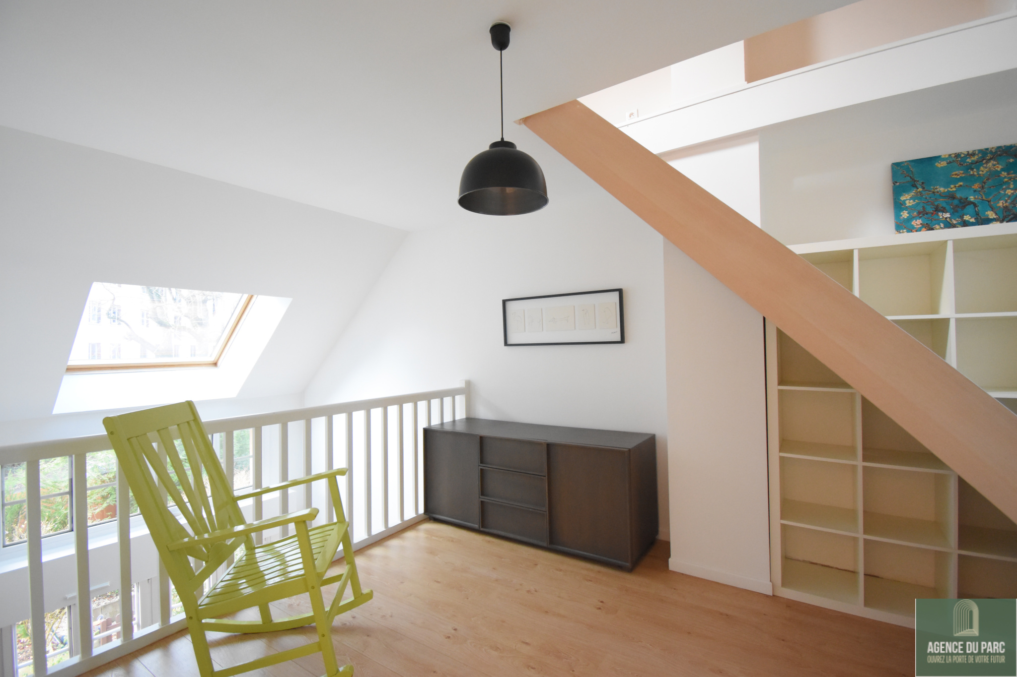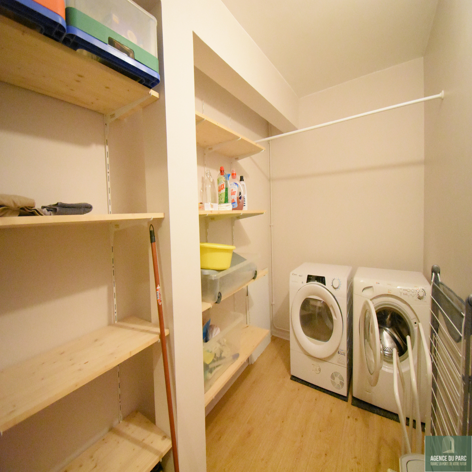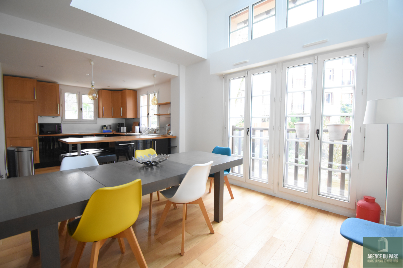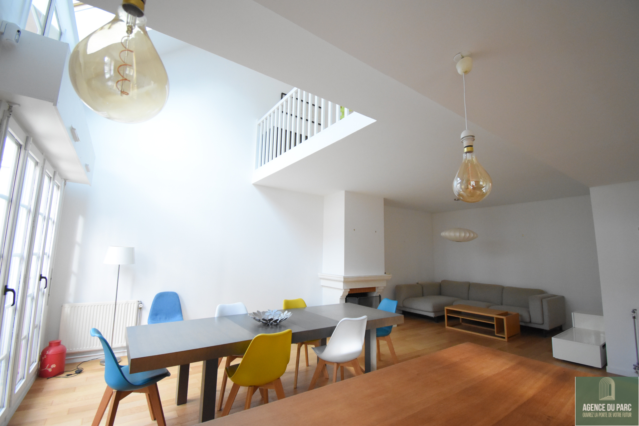 Dans une copropriété en lisière de forêt, au calme, l'Agence du Parc vous propose une maison indépendante et lumineuse avec un jardin privatif. La maison est louée meublée. Au rez-de-chaussée, une belle pièce de vie avec une cheminée, un coin salon, un coin salle à manger, un cellier et une cuisine toute équipée ouverte sur la salle à manger. Au premier étage, une chambre avec rangements, une salle de douche avec double vasque et WC, une mezzanine donnant sur la verrière du salon, un espace aménagé sous combles. En soupleix deux chambres, une salle de bains, un WC séparé et une buanderie .