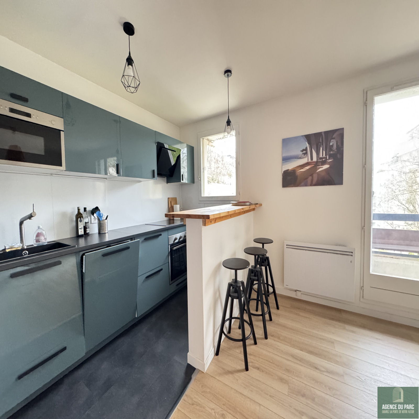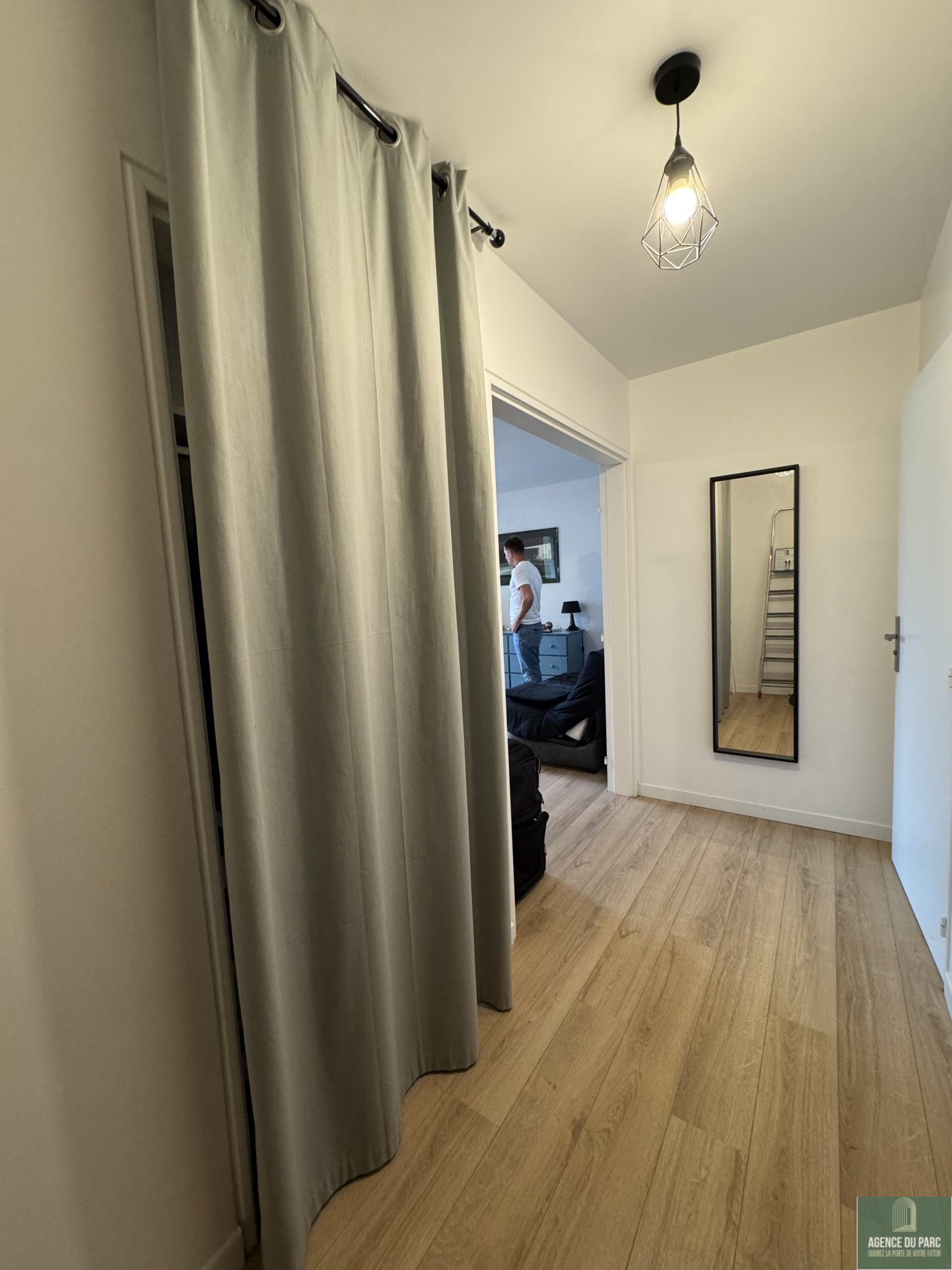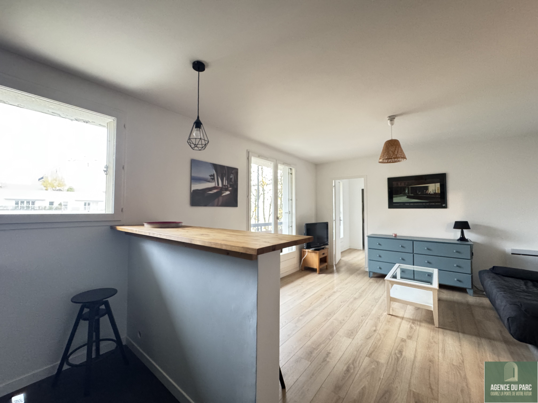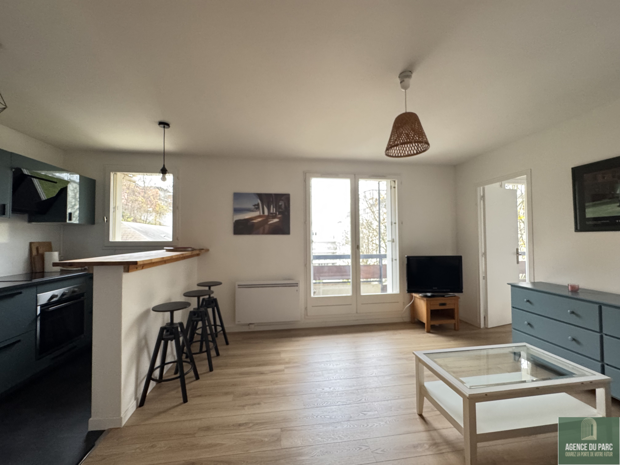 Chaville, en retrait de l’avenue Roger Salengro, dans une résidence de standing, au calme et dans la verdure, l’Agence du Parc vous propose un beau 2 pièces de 43.50 m2 loué MEUBLE, comprenant une entrée avec placard, un beau séjour de 23 m2 ouvert sur balcon filant, une cuisine américaine entièrement équipée (four, four micro-ondes, réfrigérateur, congélateur, lave-vaisselle) et ouverte sur le séjour, une chambre avec dressing, une buanderie, une salle de douches, un WC séparé.