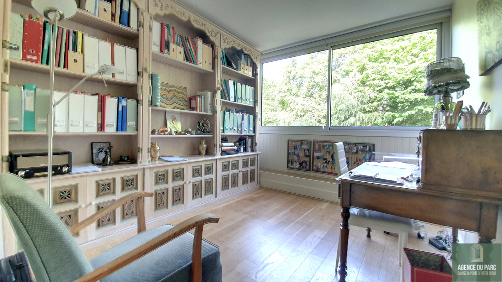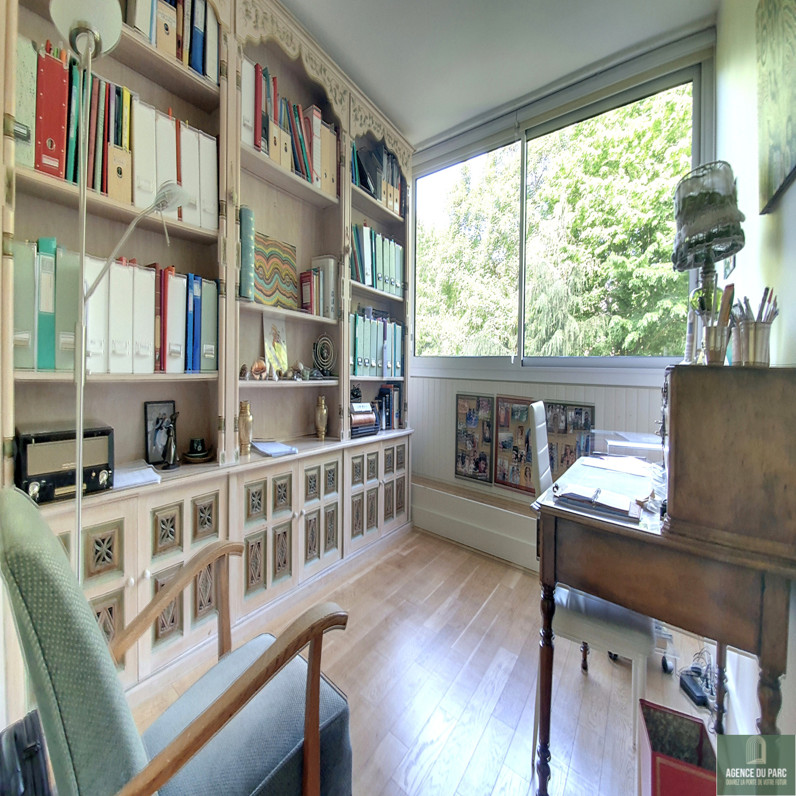 L'agence du Parc a le plaisir de vous proposer un appartement familial très bien situé, en coeur de ville, dans une résidence nichée dans la verdure. Au 3ème étage avec ascenseur et traversant, il bénéficie d'une vue dégagée et d'une belle luminosité. Ce bien comprend un double séjour donnant sur un grand balcon orienté sud-est, une cuisine dinatoire donnant sur une loggia, quatre chambres dont une avec salle de douche attenante, une salle de bains, des toilettes séparées, un dégagement avec de nombreux rangements. Une cave et un parking couvert sécurisé complètent ce bien. Un grand local vélo est à disposition au rez-de-chaussée du bâtiment. Les charges annuelles comprennent le chauffage, l'eau chaude et froide, le gardiennage et l'entretien de la copropriété et des espaces verts, et sont d'un montant de 5572€.