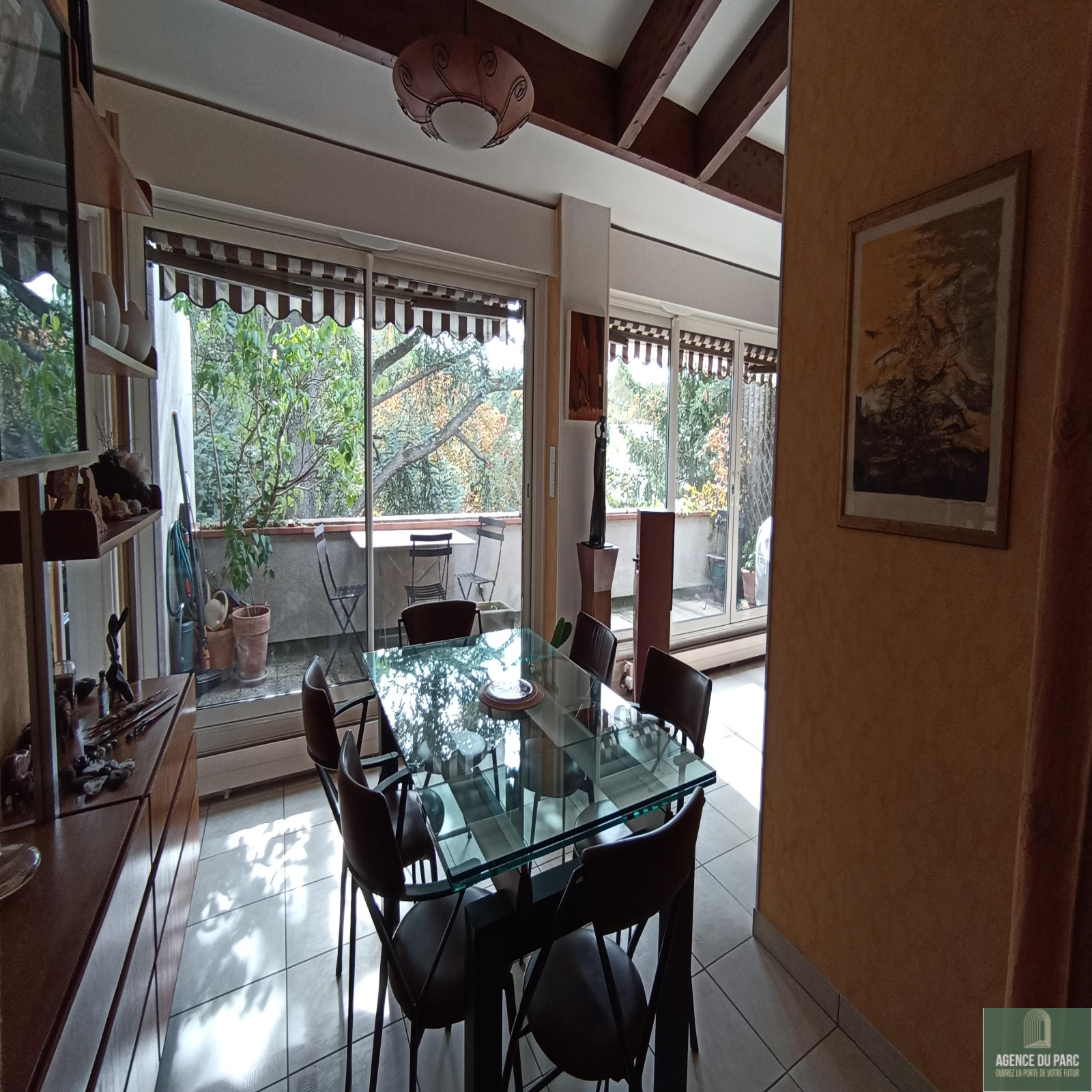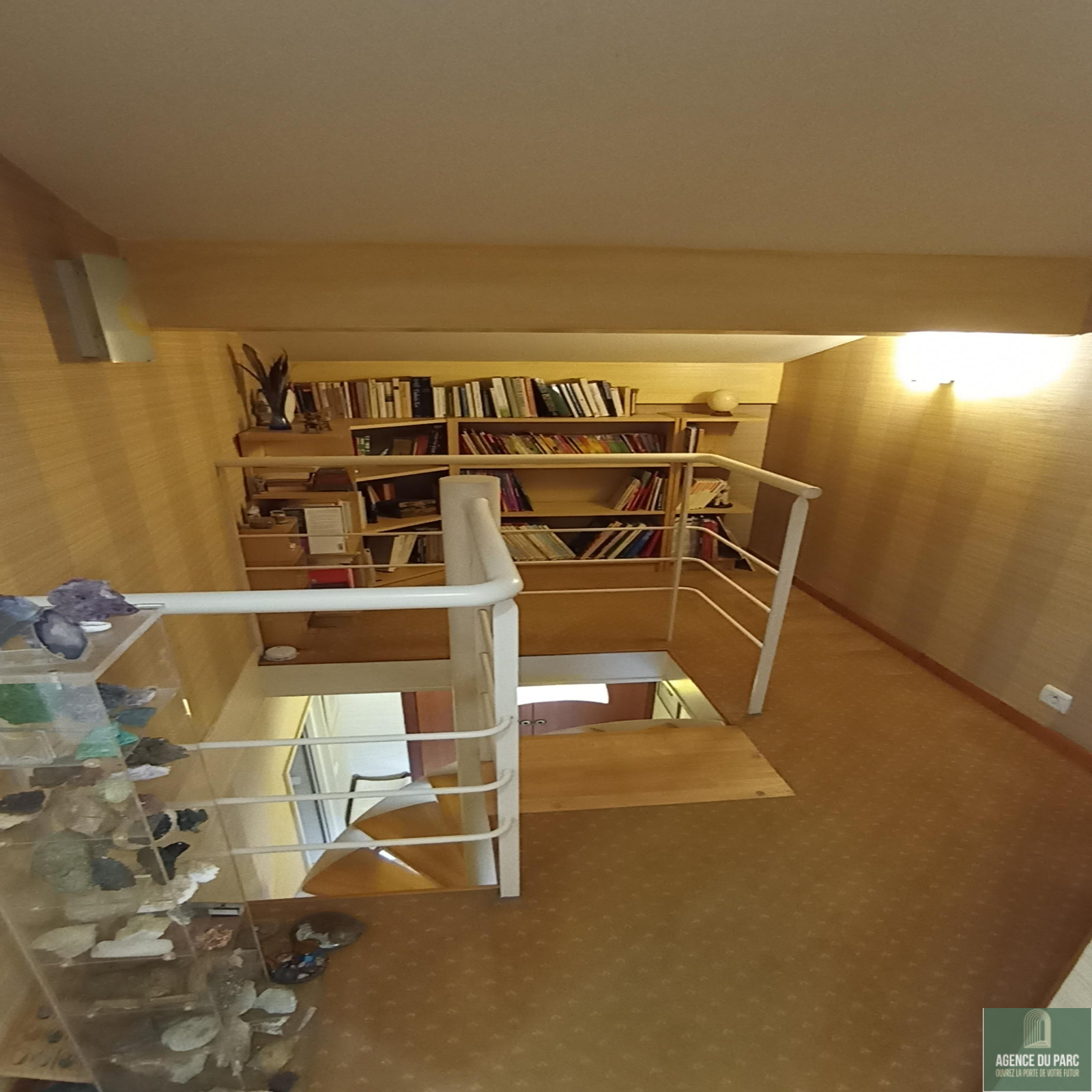 Au dernier étage, magnifique duplex familial traversant de 125,6 m² comprenant une belle entrée donnant sur le double séjour de 36 m², avec cheminée, ayant accès à une terrasse de 12 m² orientée sud, sans vis à vis, une cuisine séparée avec accès terrasse, un dégagement avec placards, deux chambres dont une suite parentale avec dressing, salle de bains avec toilettes, salle de douche et toilettes indépendantes. A l'étage, un palier dessert deux chambres avec placards et un accès à un grenier mansardé de 17 m² pour du rangemenet supplémentaire. Baies vitrées en double vitrage. Une grande cave et deux emplacements de parking en sous-sol complètent le bien. Beaux volumes, sans vis à vis, au calme avec vue sur le jardin et la forêt.