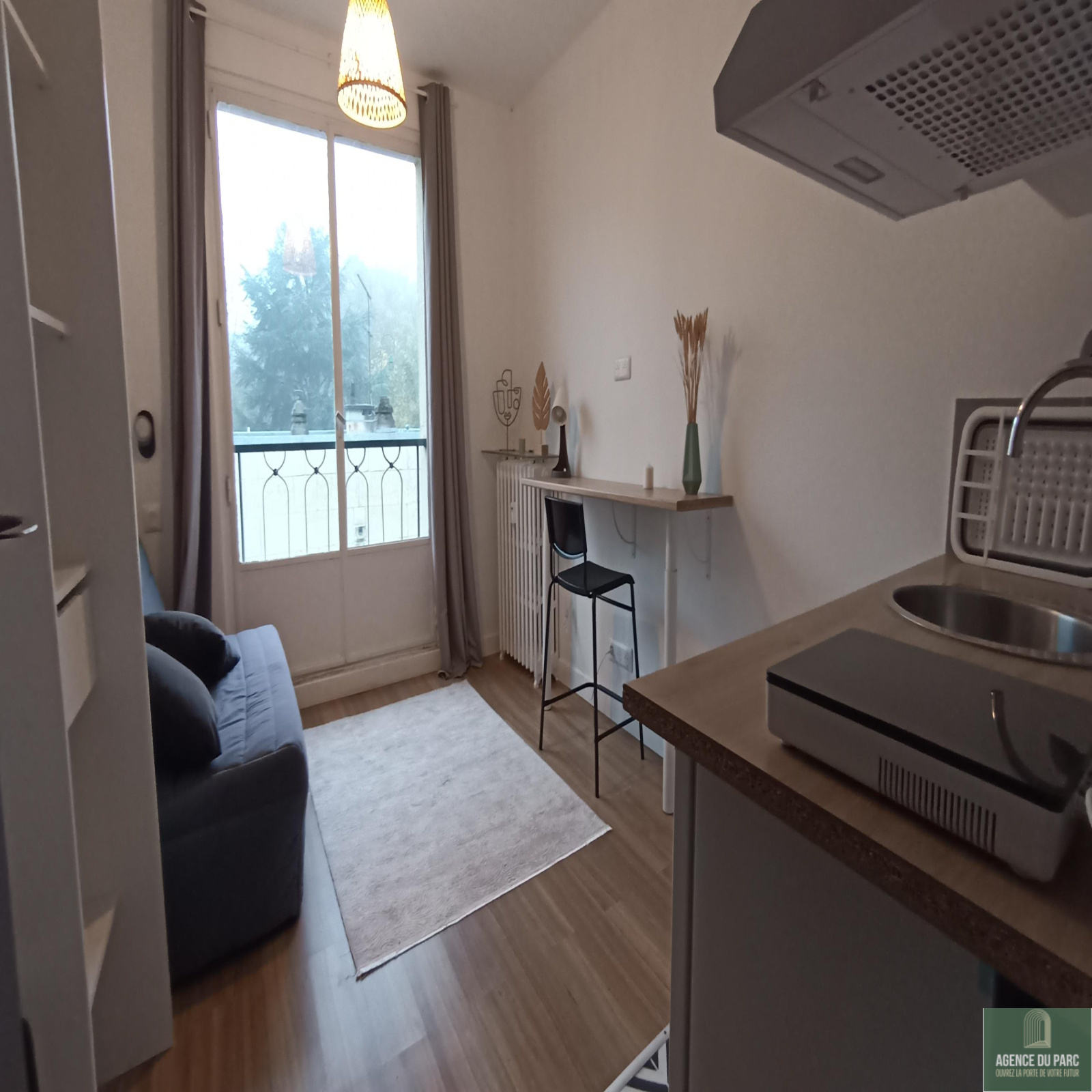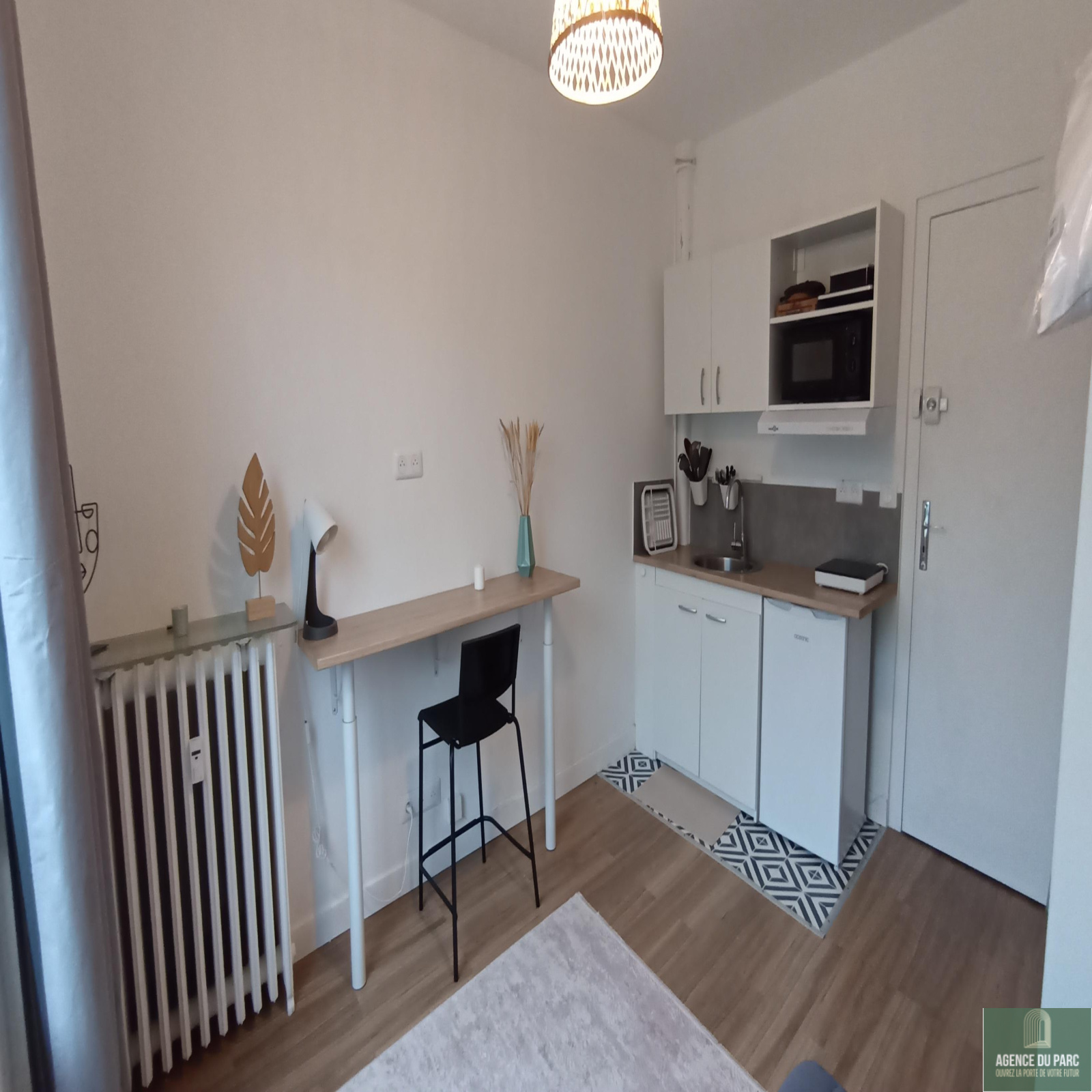 Au 1er étage, une très belle chambre de service, orientée sud, de 10,85 m² loi Carrez comprenant un espace cuisine incluant un plan de travail avec évier, une plaque de cuisson éléctrique, un réfrigérateur, un micro onde, une hotte aspirante, des éléments de rangements hauts et bas. Deux colonnes formant étagères et penderies ainsi qu'un canapé lit complètent également la vente. Le centre ville et ses commerces sont accessibles à pied en 7 mn et la gare en 5 mn en bus.