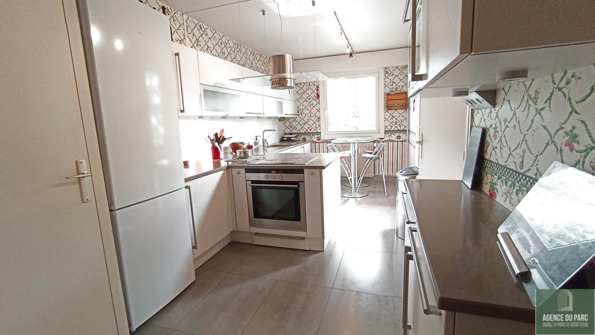 Au dernier étage, magnifique duplex familial traversant de 125,6 m² comprenant une belle entrée donnant sur le double séjour de 36 m², avec cheminée, ayant accès à une terrasse de 12 m² orientée sud, sans vis à vis, une cuisine séparée avec accès terrasse, un dégagement avec placards, deux chambres dont une suite parentale avec dressing, salle de bains avec toilettes, salle de douche et toilettes indépendantes. A l'étage, un palier dessert deux chambres avec placards et un accès à un grenier mansardé de 17 m² pour du rangemenet supplémentaire. Baies vitrées en double vitrage. Une grande cave et deux emplacements de parking en sous-sol complètent le bien. Beaux volumes, sans vis à vis, au calme avec vue sur le jardin et la forêt.